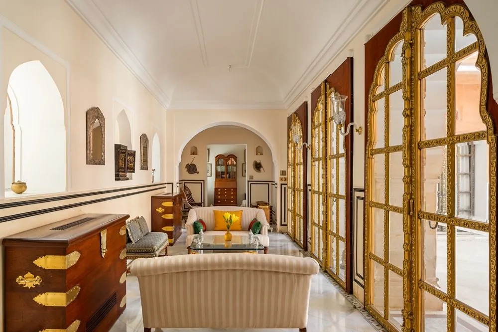 Conceived as a private heritage home rather than a conventional hotel, Naila Fort is available only as an exclusive-use residence, designed for small groups seeking privacy and seclusion. The fort has been reimagined as an ultra-luxury four-bedroom retreat, with spaces arranged around sunlit courtyards, stone corridors, and broad terraces that invite slow mornings and sunset gatherings. Antique furnishings, curated artwork, and preserved architectural details pay homage to its aristocratic past, while discreetly integrated modern comforts ensure a contemporary, residential feel.